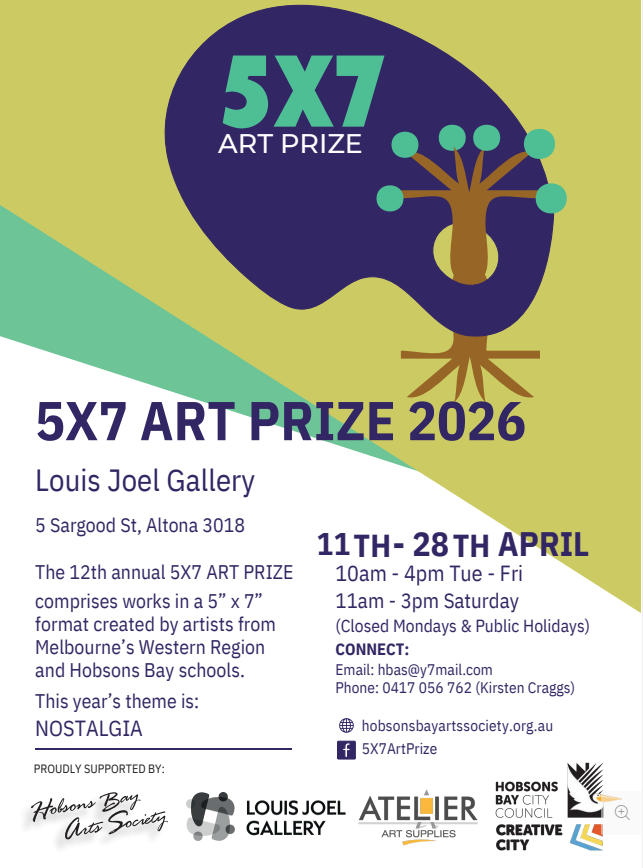This popular community art event, held at the Louis Joel Gallery in Altona, is proudly presented by Hobsons Bay Arts Society and supported by Hobsons Bay City Council and Atelier Art Supplies.